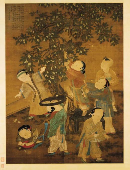 春节的时候,全家人围坐守岁,桌上的吃食里总少不了红枣,寓意“春来早”;结婚的时候,摆上红枣、花生、桂圆、莲子,象征的是“早生贵子”。也正因为有了这个“早生贵子”的好意头,和红枣有关的场景也成了历代婴戏图、百子图的常见题材,现存于台北故宫博物院的《宋人扑枣图》便是其中的典型画作,小小的果实,承载了中国人最厚重的生命观。