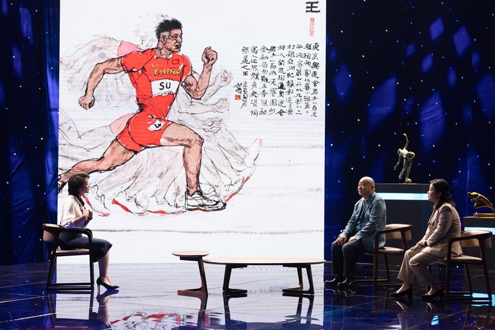 便用水墨线条表现出苏炳添对速度的不懈追求