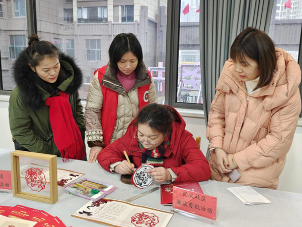 “孝感雕花剪纸”是国家非物质文化遗产。孝南区剪纸研究所组织开展“迎新春、传孝廉”活动,邀请剪纸大师到社区现场雕刻古今孝廉官员人物图、清廉植物图案等,将制作好的廉政剪纸画册赠送给社区居民。