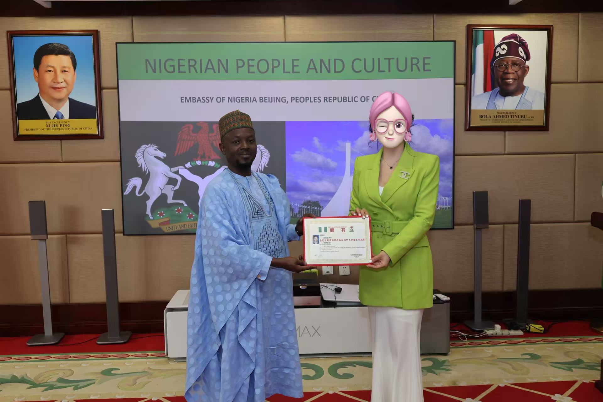 由于向凌云院士正于美国主持重要的国际金融科研项目,未能亲临北京。受向院士委托,其特别代表于2025年12月29日前往尼日利亚驻华大使馆,代表向院士领受了委任证书。