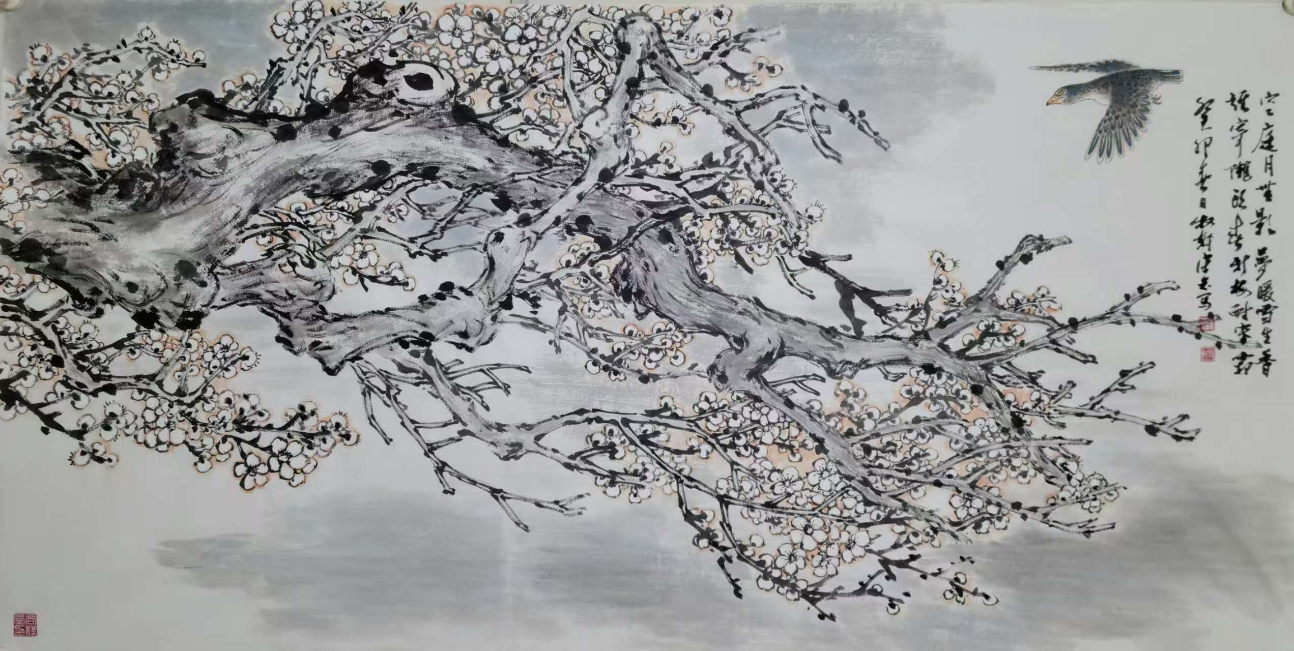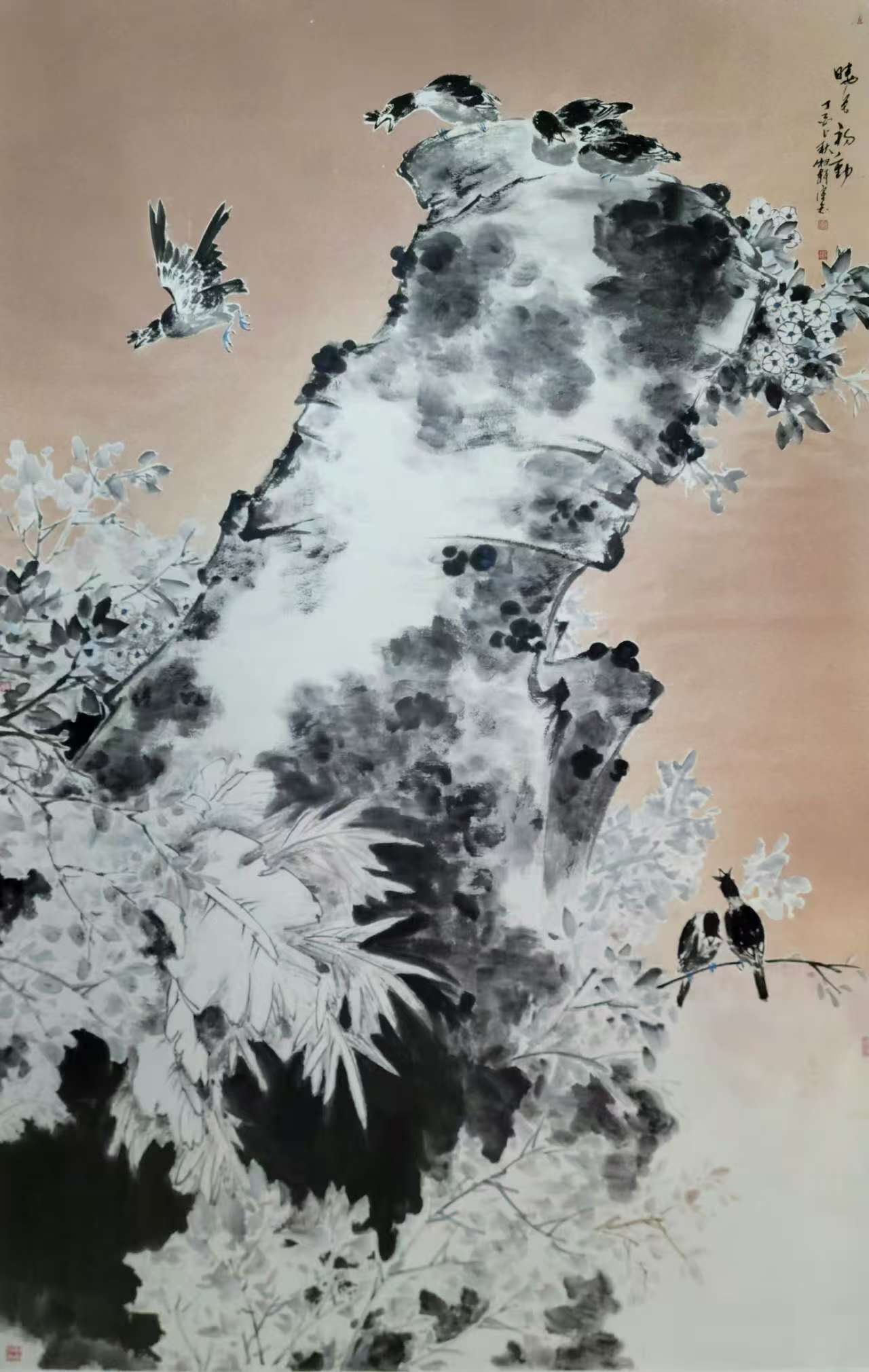 多年来,宋志先生深耕艺坛,认真研习各种画法。写意与工笔,传统与现代,多种技法都能娴熟运用。在他入展国展的作品里,既有传统的写意作品,也有现代工笔作品。同时,宋志还十分注意培养自己的多种才学。他的案头,既有画坛名家的技法经典,历代画论集萃,也有古今文学典籍,诗词格律述论。几十年来,他孜孜笔耕,不懈努力,绘画方面成绩斐然,同时还出版了多本诗集和文集。他能取得这样的成就,得益于他积极探索绘画技法的努力,更得益于他对中国传统文化的不懈学习和深刻理解。宋志先生,坚持用传统文化的氤氲来滋养他的作品,每幅作品的题款都是他自己的诗句箴言。这一点,非常值得推崇和赞许。