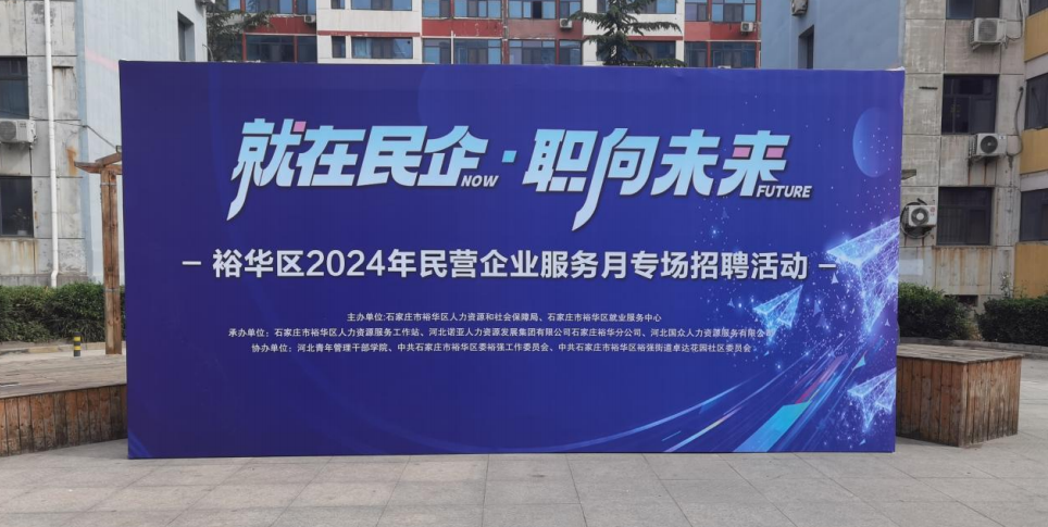 本次招聘会由石家庄市裕华区人力资源和社会保障局、石家庄市裕华区就业服务中心主办;裕华区人力资源服务工作站、河北诺亚人力资源发展集团有限公司石家庄裕华分公司、河北国众人力资源服务有限公司承办;河北青年管理干部学院、中共石家庄市裕华区委裕强工作委员会、中共石家庄市裕华区裕强街道卓达花园社区委员会协办。