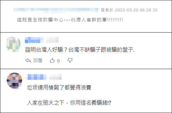 对于利用乌克兰局势诈骗的事件,台网民怒而直言:“这就是全球诈骗中心——台湾人会干的事!”