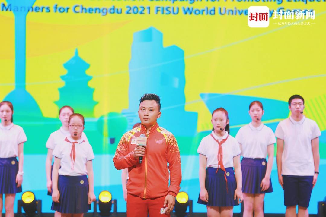 成都大运会不仅是一场高水平国际综合性赛事,更是一场翻越山海、奔赴梦想的青春盛宴。在启动仪式现场,奥运冠军、成都大运会形象大使冯喆现场带领20位蓉城少年们向全市青少年们发出了当好东道主、文明迎大运的青春倡议。