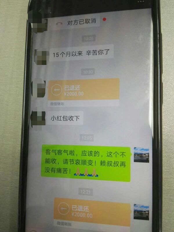 即使在医护人员和家属的共同努力下,赖叔叔最后还是抵不过凶猛的病魔,遗憾逝世。医护人员深感惋惜,虽最终未能挽救回赖叔叔的生命,但是赖叔叔的儿子仍然坚持要给施娟娟医生发来两千元的红包,并感激的告诉施医生:“这十五个月,不分昼夜的精心照顾父亲,你们辛苦了。”施医生非常感动,但是还是当即婉拒了红包。在复大肿瘤医院,不接受患者的任何礼品,红包,已经成为了一种行为准绳。