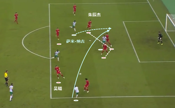结果他们的边锋萨米-纳吉打出一个撞墙配合后直接破开国足中路防线,随后一脚爆射破门取得领先。