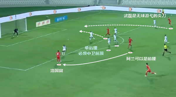 因为前场的拿球能力,国足甚至可以有效调度对手的防线站位,让无球穿插的武磊找到致命一击的机会。