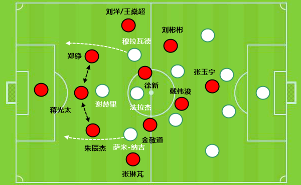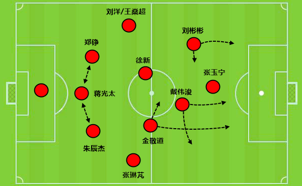 因为在攻击线上只有中锋张玉宁、攻击手谭龙和边锋刘彬彬,球队能够选择的变化不多。