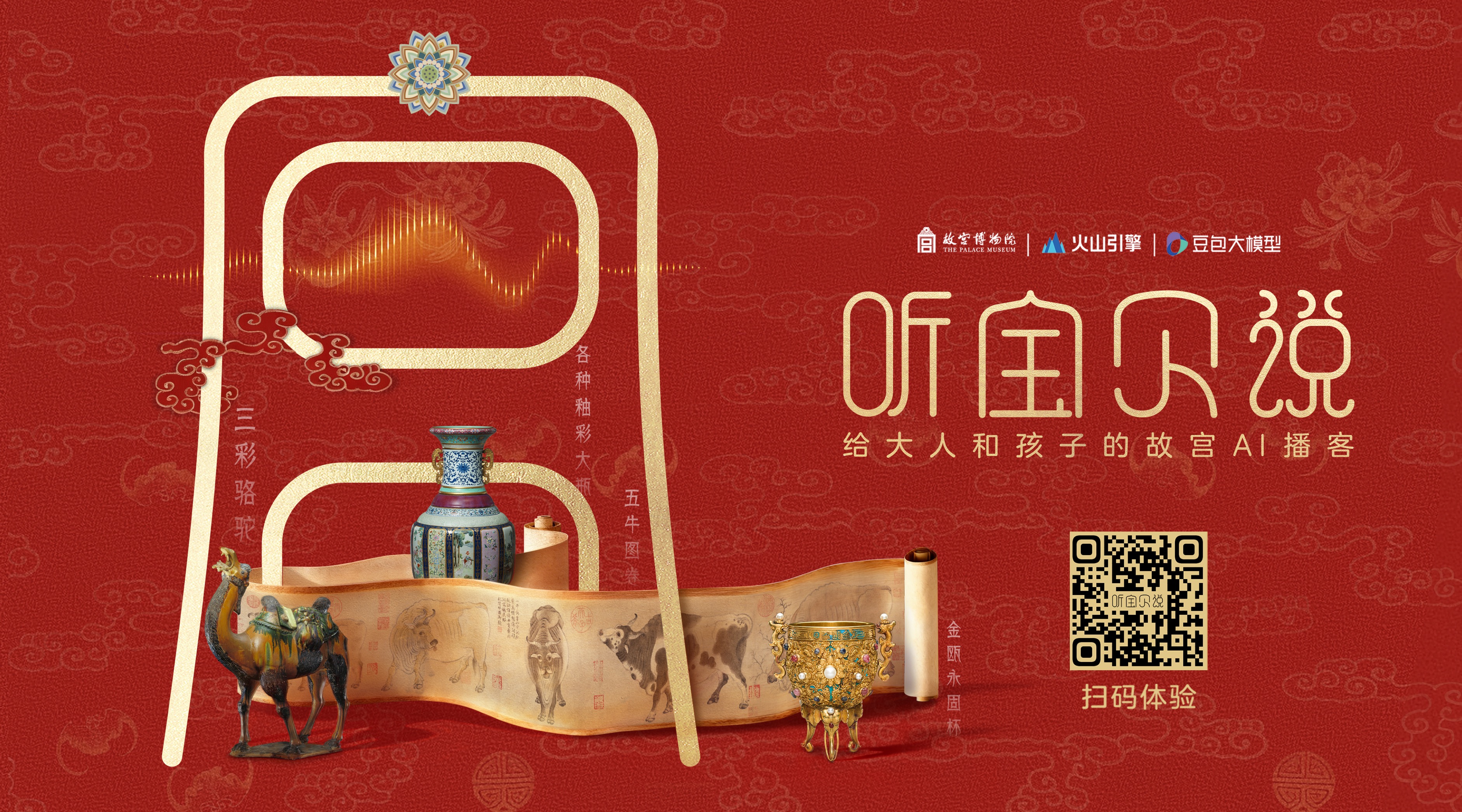 在故宫博物院建院百年之际,故宫博物院与火山引擎展开一系列合作,没有选择宏大的技术叙事,而是从两个具体而温暖的产品切入:一部中秋的AIGC短片《故宫宝贝团圆夜》,和一个新年的AI互动播客“听宝贝说”。