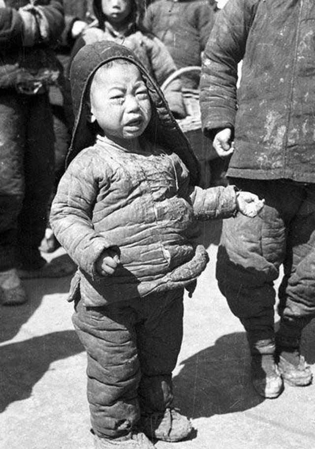 面容黝黑,衣服破烂,被抛弃了的孩子用最弱小的身子为这场大灾荒添了最令人心碎的一笔。孩子是祖国的花朵,但对于他们,活下去都成了奢望,谈何未来?又谈何希望?