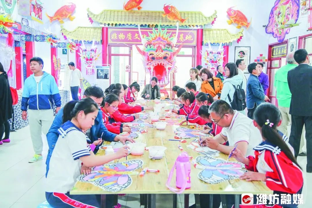 潍坊国际风筝会期间,嘉宾参观风筝传承基地。