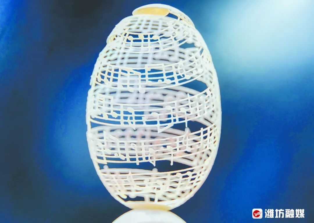 潍坊市博物馆文创作品蛋雕《国歌》。