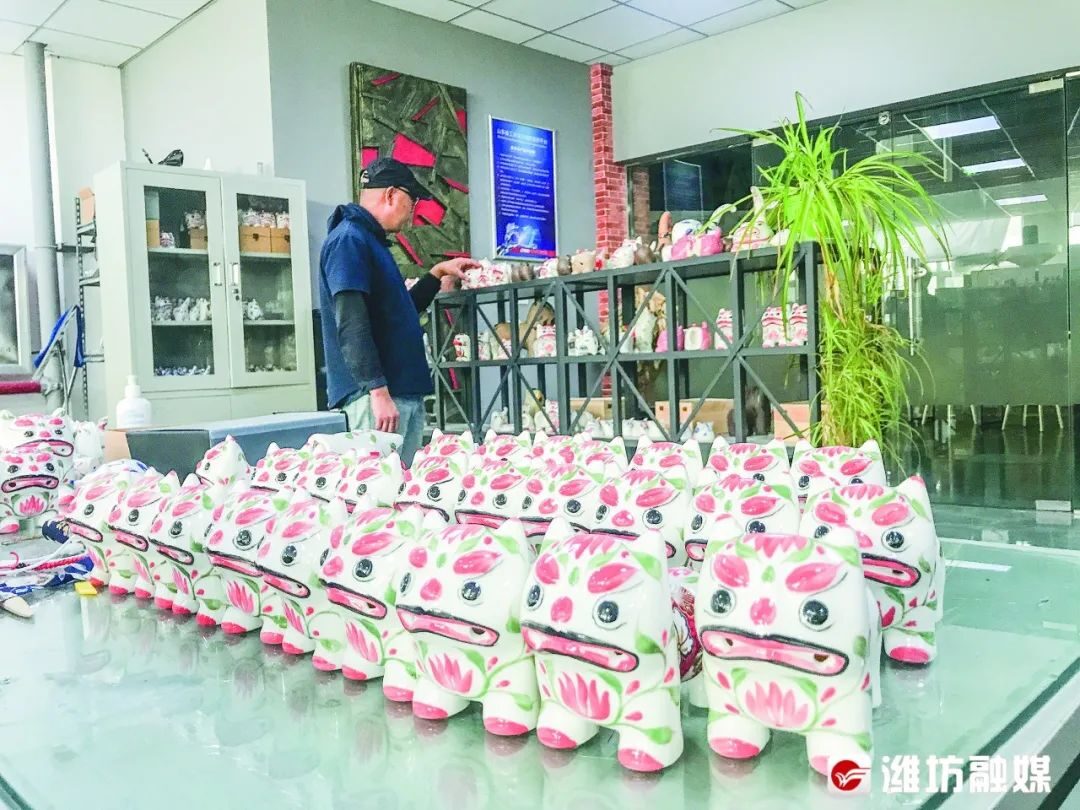 走进位于高新区玉清东街与银枫路路口东北角的潍坊洪景天创意文化公司,仿佛进入了一个“老虎世界”。“我在大学是学雕塑的,毕业后做工业设计。单位里有一块业务是搞文创的,我就想,什么产品既有潍坊特色又可以创新设计?思来想去,最终选定了泥老虎。”公司负责人康健告诉记者,他的老家是青州,小时候经常玩泥老虎,而且泥老虎的制作工艺与自己所学的雕塑完美结合,更容易上手。