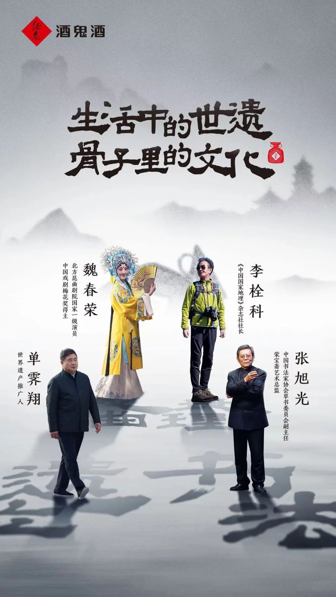 在《生活中的世遗,骨子里的文化》中,酒鬼酒邀请故宫博物院第六任院单霁翔、昆曲大师魏春荣、《中国国家地理》杂志社长李栓科、书法大师张旭光,以“世遗”、“戏曲”、“地理”、“书法”四个角度,去阐述世遗融于生活的文化价值,以独特、贴近的视觉拉近世遗广大民众的距离,让世遗真正“活起来”。